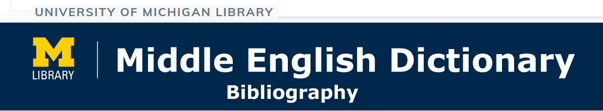 - A very very incomplete list of editions of French and Latin works cited by MED when supplying a Latin or French source for works translated into Middle English. The old MED library held many of these volumes, but any record there might have been of them has not been found, even in the MED archives at the Bentley Historical Library. The present list has had to be constructed, or reconstructed, work by work, and certainly includes some editions unknown to the editors of the print dictionary (and vice versa).